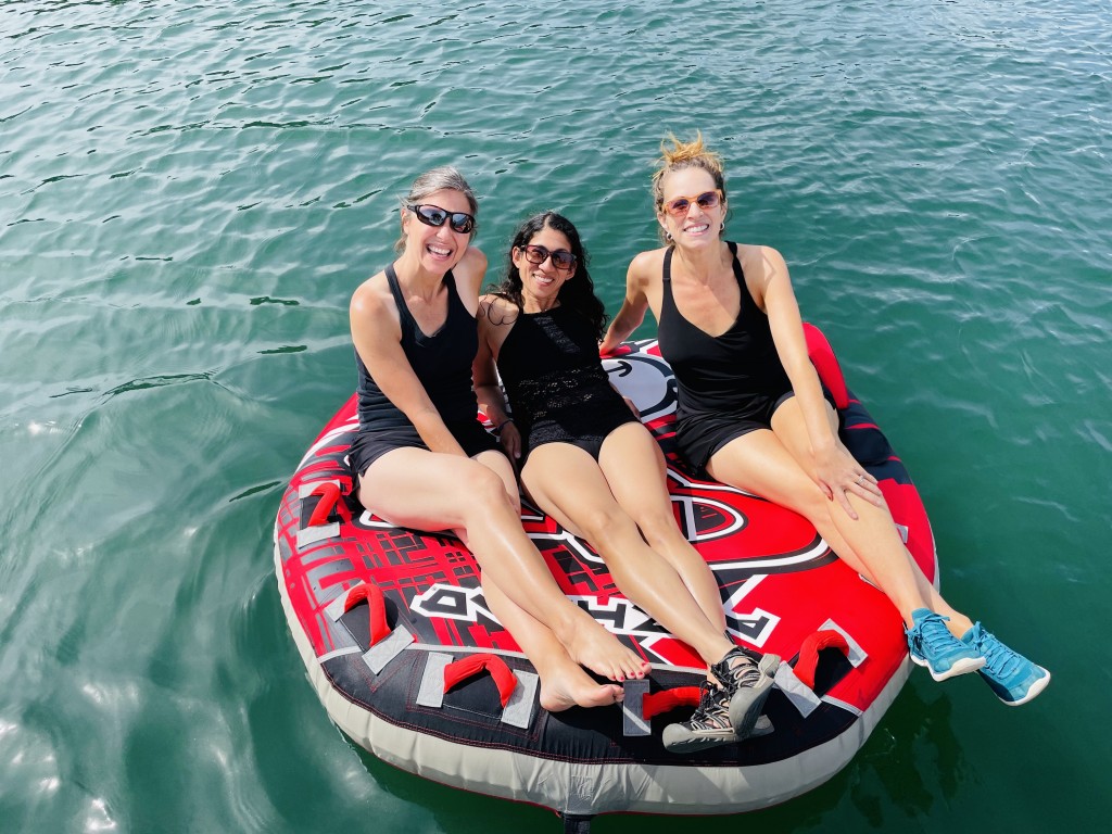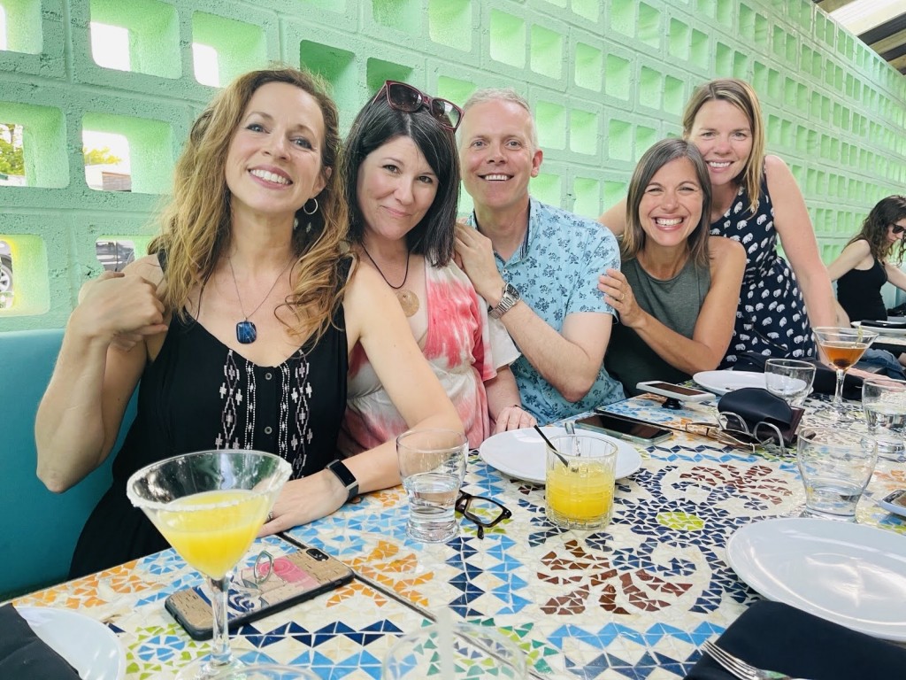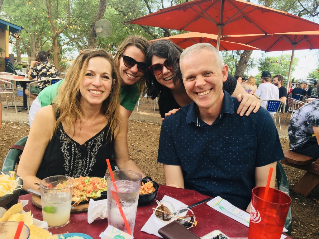After 14 months of committed mask wearing, physical distancing, obsessive hand washing and a few canceled vacations, I finally boarded an airplane last Friday and flew to Austin to spend 72 fun-filled hours with some of my favorite people. Right before the trip I saw a headline about liberals who can’t quit lockdown, and it resonated with this liberal as it felt both wrong and wonderful to travel again. We stayed together at Shannon’s beautiful house whose backyard is the Greenbelt that leads right to Chuy’s margarita patio. We remembered our UT drama days, enjoyed Rainey Street, held a sister convention, relished the heat & humidity, explored virtual reality, and celebrated Mother’s Day with breakfast tacos, balloons and wildflowers. And of course we belly laughed most of all.