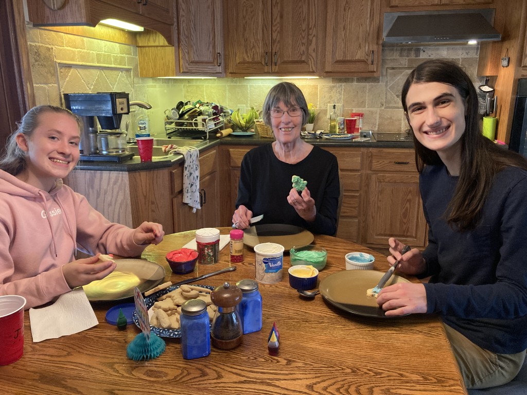 But most importantly, Huck has spent the semester learning 16 songs for three Madrigal Feast performances. As a kid attending St. Paul’s Wednesday night services, he would watch the place get transformed every early December for the fancy high school choir event that included Renaissance-style costumes, lots of candles, and incredible singing. He had to audition for this special choir and rehearse outside of school hours; the first time he ever drove alone at night was home from one of these rehearsals. Not only did this mean extra time with his beloved choir directors, but his much missed junior high teachers are also involved in this endeavor. We attended the closing Madrigal Feast on Saturday night with dear John and Shana, and after helping take down decorations, load cars and transport everything back to the high school for next year, Huck joined his choir classmates and teachers for a late night celebration at Village Inn. Troy and I struggled to stay awake waiting for him and realized that between Huck not being a party animal and the pandemic restrictions of the last year and a half, we’ve never set a curfew for him. He came home just after midnight full of stories of the evening, and I tried my hardest to channel my inner Linda Hottman, mom extraordinaire who always waited up for me after high school play practices and performances to hear every last detail.