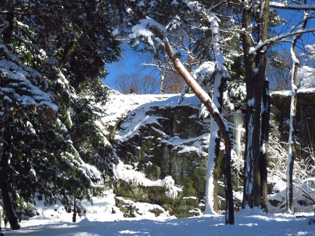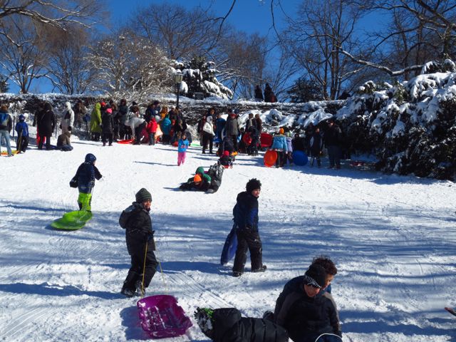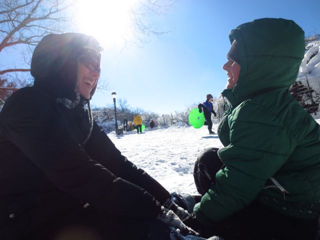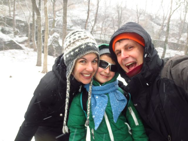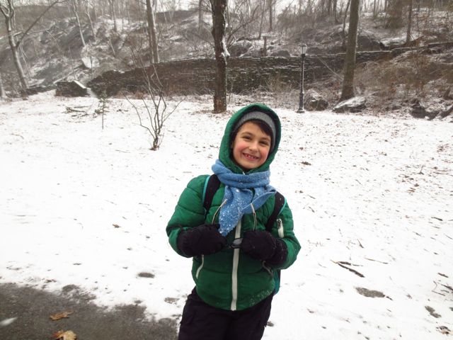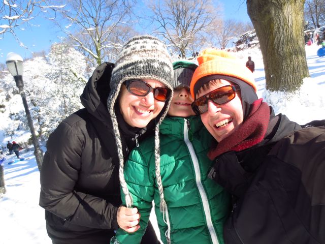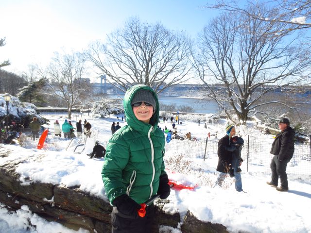 Winter Storm Nemo brought us a lot of snow on Friday and Saturday, once again putting the news of New York weather into the rest of the country’s living rooms. (My dad in Kanas always informs me of the next disaster.) Since Huck would be happiest living inside a snow house full-time, we soon bundled up and began exploring our beautiful Christmas card-like neighborhood. The highlight was our time at Fort Tryon Park overlooking the Hudson River where we risked our lives (and gloves) sledding down the hill into tree trunks, stone walls and fellow sledders. There is nothing like sledding on a freezing cold day to make one aware that one is almost 43 years old. ”The old mare, she ain’t what she used to be,” Troy and I like to say about our middle-aged bodies. After all that activity mine felt exactly how my ultra marathoner brother in-law must feel. Huck, however, is unstoppable in the snow, until we stop him and make him come home for warm beverages and Phineas & Ferb, which to me is the best part of winter weather. The coming home and warming up part.