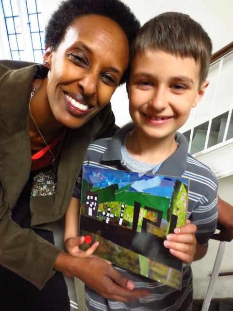 Mahlet really is quite the art collector! Here she is with a 2nd grade class painting of Manhattan.