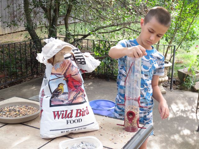 1. We’ve become regular bird watchers in our back yard, what with our popular bird feeders and bird baths. Everyday we see many cardinals, blue jays, finches, titmouses and chickadees, and often I realize what I thought were birds singing is actually Troy calling out to his new friends.