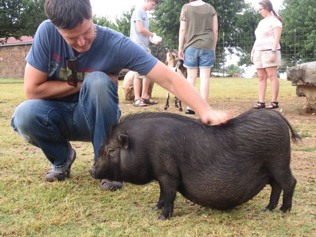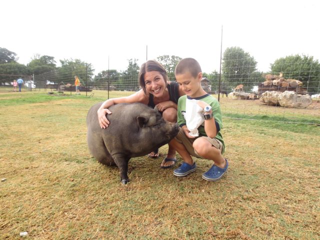 That looks awesome! I want to go! And you look so natural with that huge pig–get one! And is Huck sporting both of his watches? Love! xoxo