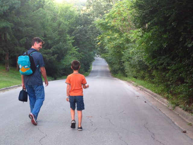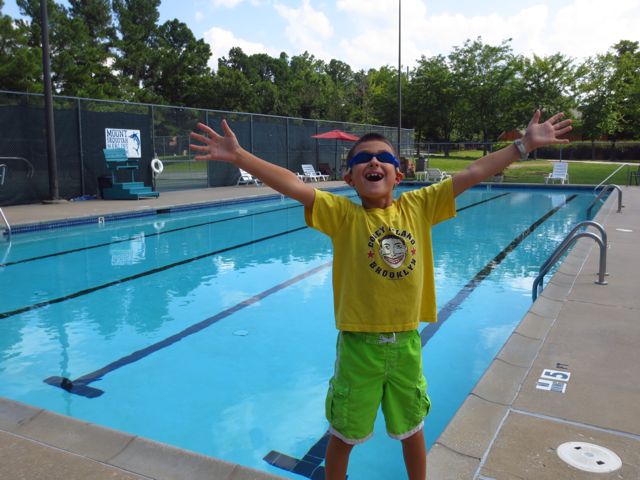 After a wonderful late Sunday afternoon at our little Mount Sequoyah pool on the last day of summer, which we had to ourselves for two straight hours for some wonderful and mysterious reason, we headed back to our sweet house for dinner. Sitting around the table we shared highlights of our brief seven week summer as we prepared for tomorrow’s first day of school excitement. There were our trips to the pool, the fire pit, shaved ice, Braum’s ice cream, our Devils Den hike, our weekend with Rick and Raina, our trip to Kansas, the drive-thru Safari Zoo, Crystal Bridges, First Friday Bentonville, First Thursday Fayetteville, “As You Like It,” mini golf, candy shopping at The Mill, the Farmer’s Market, a Gulley Park concert, the Jones Center, the library, playing in the rain, the first time to go down water slides, “Annie,” Nana and Papa’s visit, after dinner walks, after dinner drives, swinging in the back yard, “So You Think You Can Dance,” meeting so many wonderful new people, reading so many wonderful books, popsicles, movies, cookouts, creeks, and staying up till 9PM.