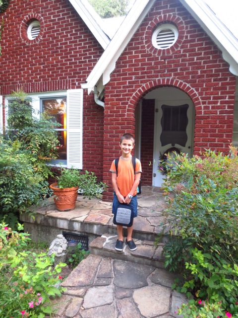 I love that Huck pointed out that he can have a first day of school picture in front of a house now. LOVE!!! What a kid!!1