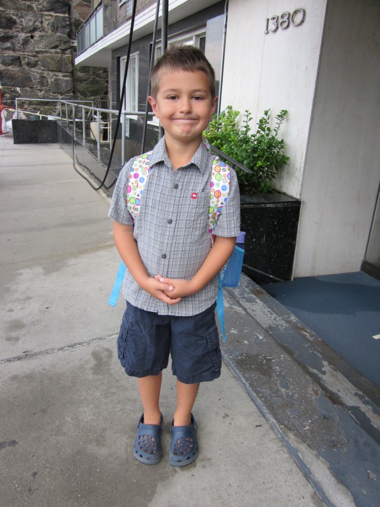 Oh Huck! You look so grown-up and ready for Kindergarten. I would sure love my class if you were in it and I was a teacher. I just love that you ride a subway to school–what a cool NYC kid! xoxoxo