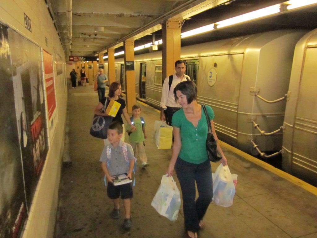A very brave and excited Huck began kindergarten this morning and has declared it to be very, very fun, much to the relief of his mama. Our day began with Huck and I both oversleeping past our 7:00 wake up call while Pappy T quietly read his book on the couch and forgot he was in charge of getting everyone awake. We woke Huck up around 7:15 and then began running around trying to get ready for school, frantically eating smoothies and getting dressed and brushing teeth. It wasn’t until I was taking Huck’s first-day-of-school picture outside our building that I realized he had toothpaste smeared all over his mouth and I had pieces of fruit in between all my teeth. We then met Luca and his family on the corner with all of our bags of school supplies in hand as the six of us hurried to the A train to go our two stops up to Muscota. Huck’s school welcomes families on the first day so Troy and I got to join other parents in the classroom for the first hour or so, at which time we retired to the lovely coffee shop next door and filled up on caffeine with each other. At the end of the morning Huck’s teacher Marilyn whispered to me, “I am in love with my class.” I think they’re in love with her, too. Now we get to enjoy a four day weekend thanks to Rosh Hashana, and this includes a visit to Chuck E. Cheese’s in celebration of kindergarten starting. Here’s pictures from our bonkers first day of school … and here’s to waking up on time next week.