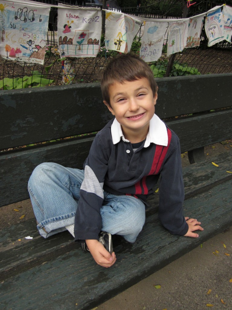 Today Huck returned to school after two days away recovering from strep throat. He spent the weekend in awful pain, mostly sleeping and hardly eating anything at all. By Monday morning the miracle of antibiotics began doing their thing and by Tuesday he was almost back to normal. We kept him home yesterday to be safe and by mid-day his delightful energy had returned. The two of us needed some fresh air so we took a walk to the park and found a bench in the sun to read our latest Andrew Lost book followed by a nice lunch at the Greek diner up the street where I witnessed the return of Huck’s appetite. Several folks asked Huck why he wasn’t in school and he would awkwardly tell them, “I have a strapped throat.” It was nice having my boy back home with me again.